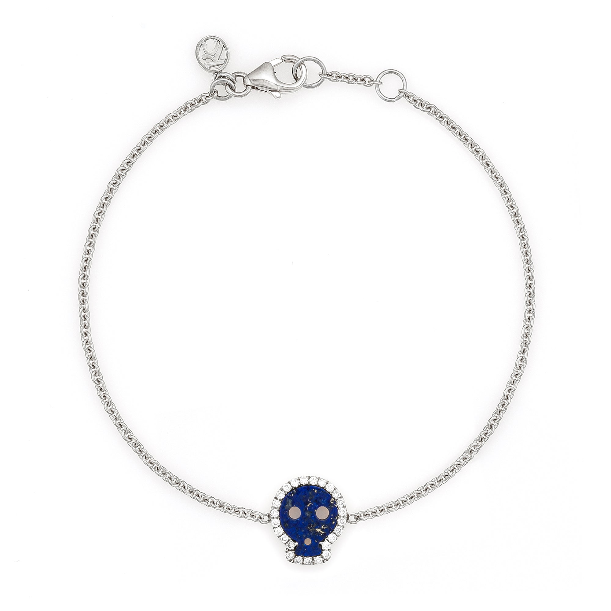 Lapis Lazuli is a sought after stone representative of power, spirit, wisdom, and truth. Surrounded by pavé-set white diamonds, this dainty skull is more than just a cool accessory; it is a reminder of your personal power.